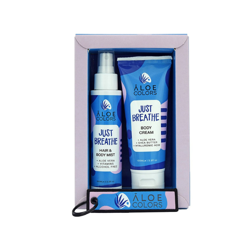 Aloe Colors Just Breathe Gift Set with Body Cream, 100ml, Hair & Body Mist, 100ml & Key Ring