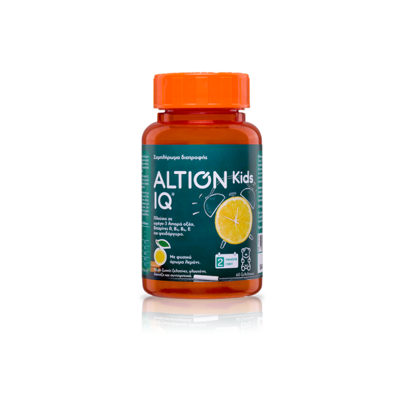 Το ALTION Kids IQ® είναι συμπλήρωμα διατροφής πλούσιο σε Ω – 3 λιπαρά οξέα (α-λινολενικό οξύ) φυτικής προέλευσης από έλαιο λιναρόσπορου, βιταμίνες (A, E, B5, B6) και ψευδάργυρο.