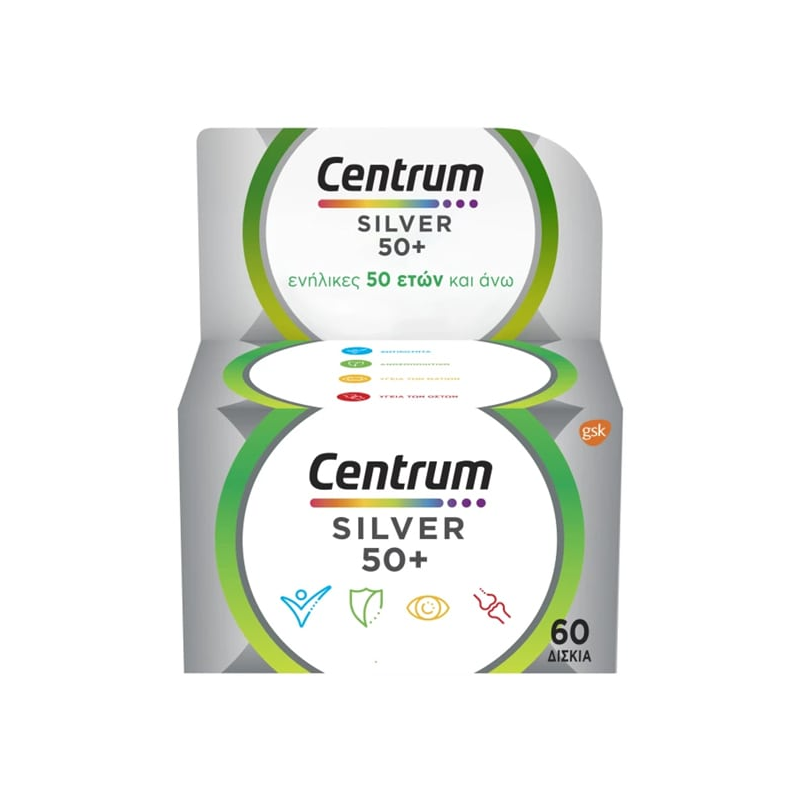 Το Centrum silver 50+ είναι ένα συμπλήρωμα διατροφής με προσαρμοσμένα επίπεδα βιταμινών, μετάλλων και ιχνοστοιχείων, ώστε να ανταποκρίνεται στις διατροφικές ανάγκες των ενηλίκων 50 ετών και άνω. Εύκολο στη λήψη, όπου και όποτε το χρειαστείτε. Κατάλληλο για ενήλικες, άνδρες και γυναίκες.