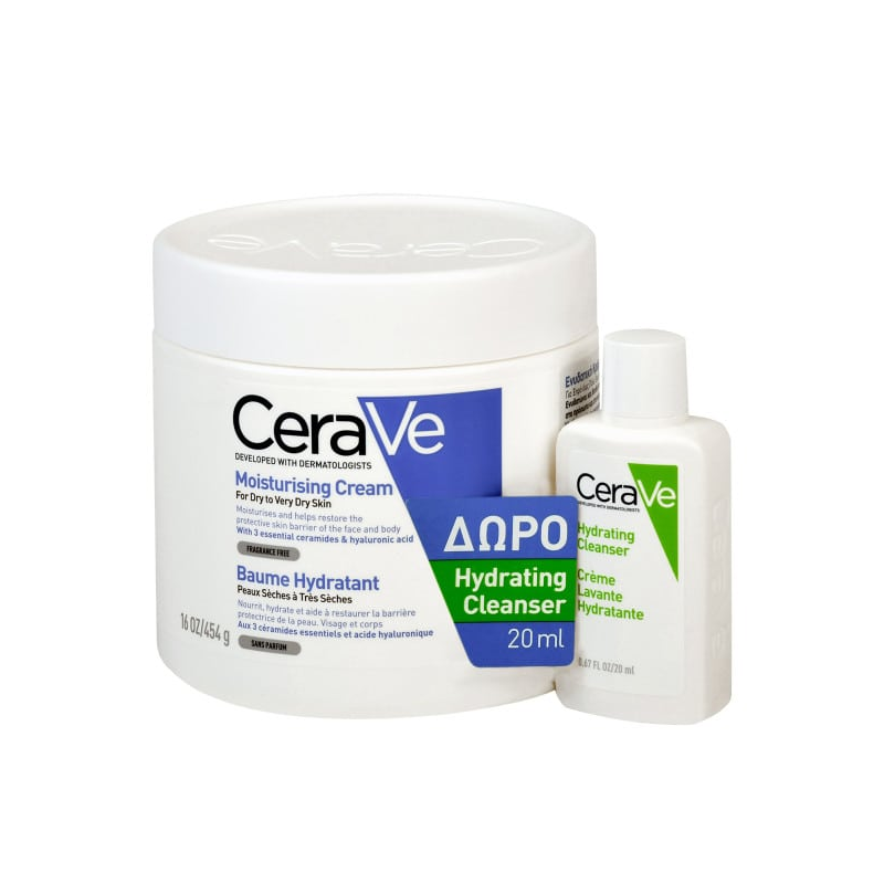 CeraVe Promo με Moisturising Cream Ενυδατική Κρέμα για Ξηρό έως Πολύ Ξηρό Δέρμα, 454g & Δώρο Hydrating Cleanser Κρέμα Καθαρισμού, 20ml, 1σετ