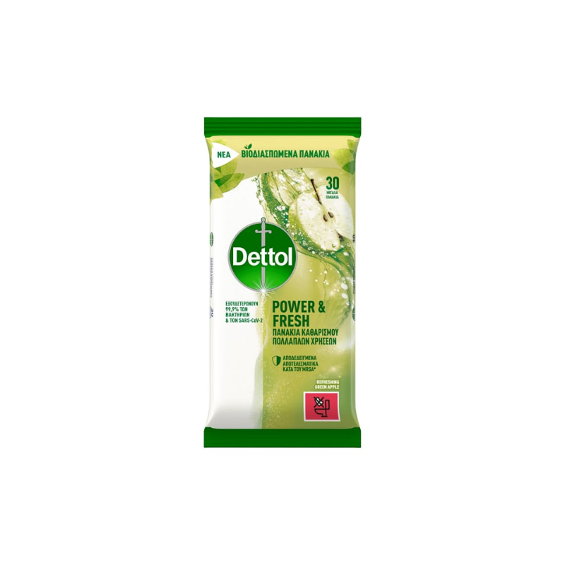 Dettol Power & Fresh Antibacterial Multi-Purpose Wipes Green Apple, 30pcs