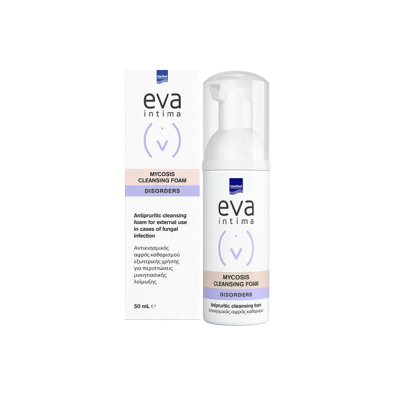 Το Eva Intima Mycosis Cleansing Foam αποτελεί ένα καινοτόμο ιατροτεχνολογικό προϊόν, ειδικά σχεδιασμένο για τον καθαρισμό των έξω γεννητικών οργάνων επί περιπτώσεων λοίμωξης από στελέχη μυκήτων Candida spp.