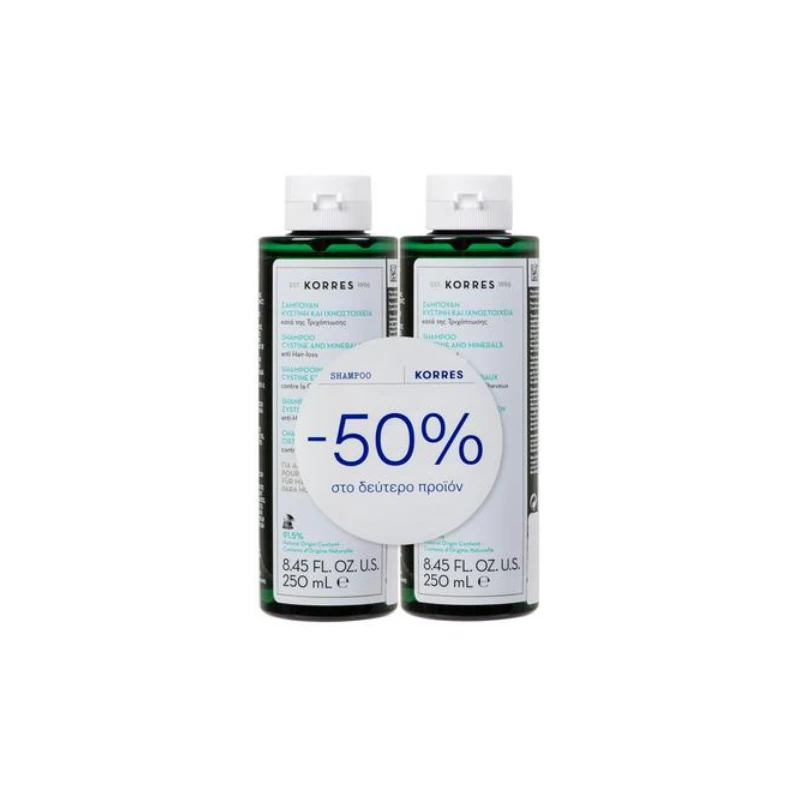 Korres Promo Pack Σαμπουάν σετ κατά της τριχόπτωσης για Άντρες με Κυστίνη + Ιχνοστοιχεία 1+1, 250ml + 250ml