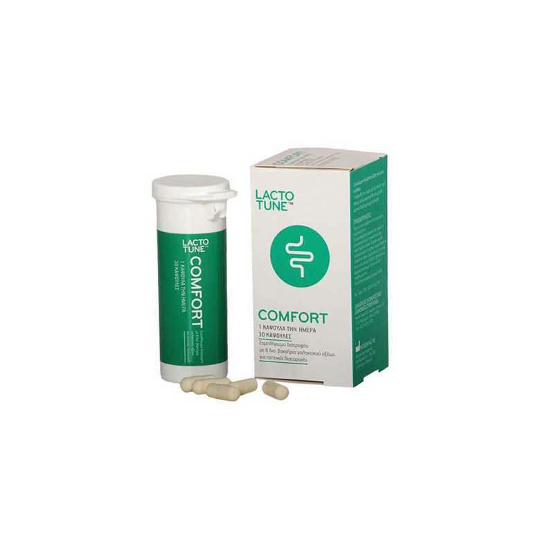 Το LACTOTUNE™ Comfort της Innovis Pharma, είναι ένα καινοτόμο συμβιωτικό προϊόν με 8 διαφορετικά στελέχη προβιοτικών βακτηρίων γαλακτικού οξέος (8 δισεκατομμύρια), με συγκεκριμένες ιδιότητες, πρεβιοτικές ίνες Actilight®, τη βέλτιστη τροφή των προβιοτικών, καθώς και μικρή ποσότητα κιτρικού ψευδαργύρου που συμβάλλει στο φυσιολογικό μεταβολισμό υδατανθράκων και μακροθρεπτικών συστατικών(4). Ο συνδυασμός αυτός επιδρά ευεργετικά στη συνολικότερη υγεία του πεπτικού συστήματος, ενώ ανακουφίζει από συμπτώματα όπως φούσκωμα, κοιλιακό άλγος, διάρροια, δυσκοιλιότητα κτλ.