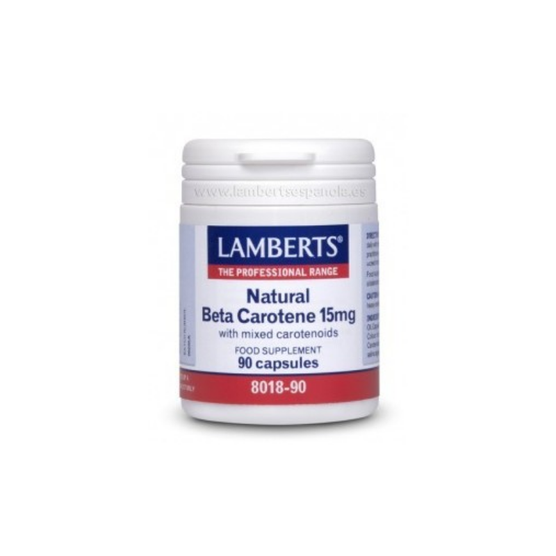 Το β-καροτένιο αποτελεί μια από τις πιο σημαντικές χρωστικές ουσίες των φυτών και την συναντάμε σε όλο το φυτικό βασίλειο. Υπάγεται στην οικογένεια των καροτενοειδών και όταν λαμβάνεται από το στόμα αποτελεί πρόδρομο της Βιταμίνης Α. Για τον λόγο αυτό αναφέρεται συχνά και ως «προβιταμίνη Α». Η μετατροπή του β-καροτενίου σε βιταμίνη Α λαμβάνει χώρα στο ήπαρ, τα νεφρά και τον εντερικό βλεννογόνο, σε ποσοστό εξαρτώμενο από τις φυσιολογικές ανάγκες του οργανισμού. Το β-καροτένιο στο Natural Beta Carotene της Lamberts εκχειλίζεται στη φυσική του μορφή από το Dunaliella Salina, το οποίο αποτελεί ένα ροζ φύκι που συναντάται στις επιφάνειες των θαλάσσιων λιμνών και περιέχει μικρές ποσότητες άλλων καροτενοειδών. Η ανάπτυξη του οργανισμού γίνεται σε υδάτινο περιβάλλον με υψηλή περιεκτικότητα σε άλας, κάτι που συμβάλλει στην πρόληψη επιμόλυνσης από παθογόνους μικροοργανισμούς. Όπως όλα τα σκευάσματα της Lamberts, παρασκευάζεται εντός του Ηνωμένου Βασιλείου σύμφωνα με τα αυστηρά πρότυπα της Φαρμακευτικής GMP (Pharmaceutical GMP).