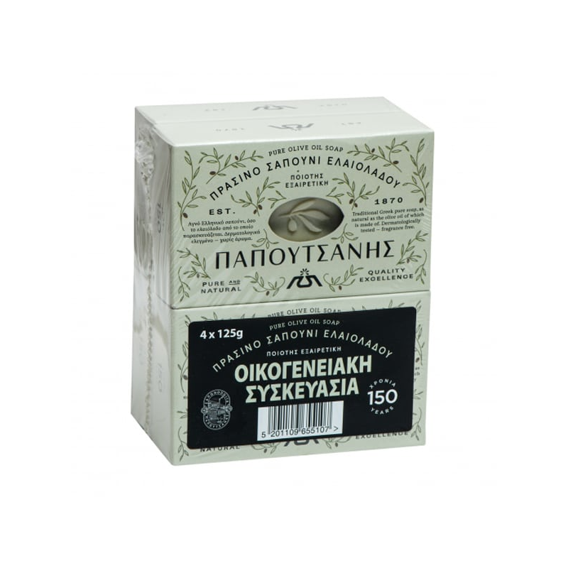 Papoutsanis Traditional Pure Olive Oil Bar Soap, 4x125g