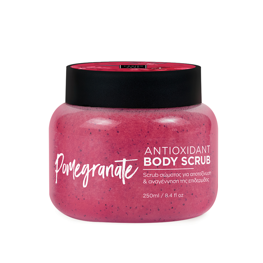 To scrub σώματος με άρωμα ρόδι καθαρίζει και ανανεώνει την επιδερμίδα σου, αφήνοντάς την απαλή και βελούδινη!