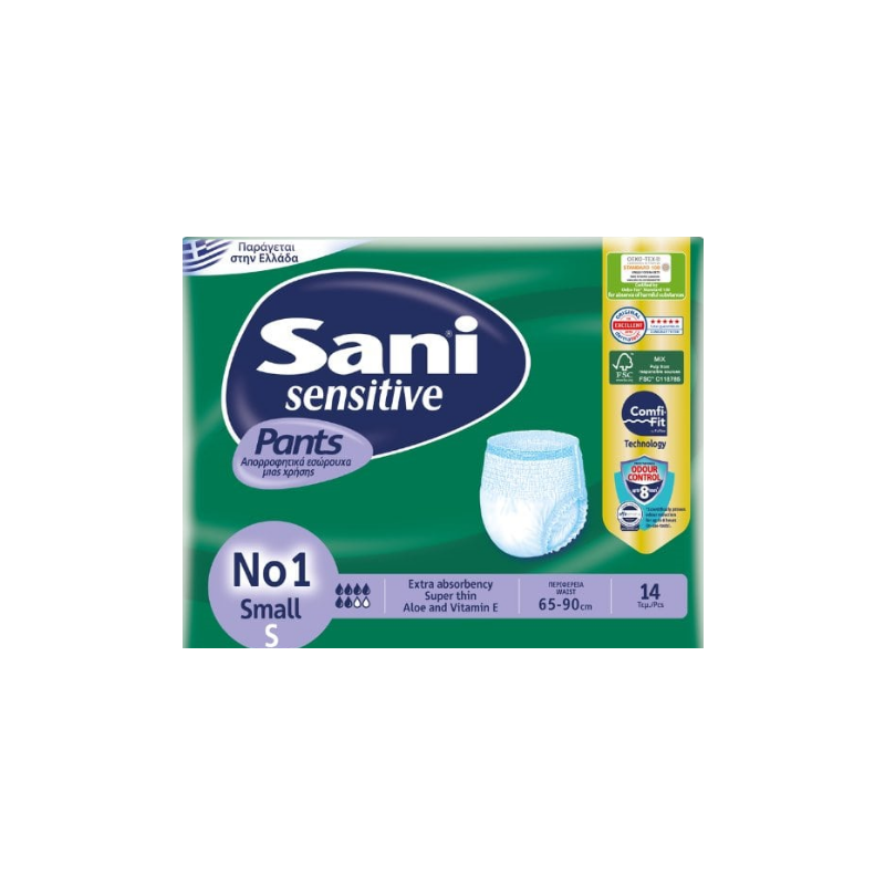 Sani Sensitive Pants Small No.1 Ελαστικό Εσώρουχο Ακράτειας, 14τμχ