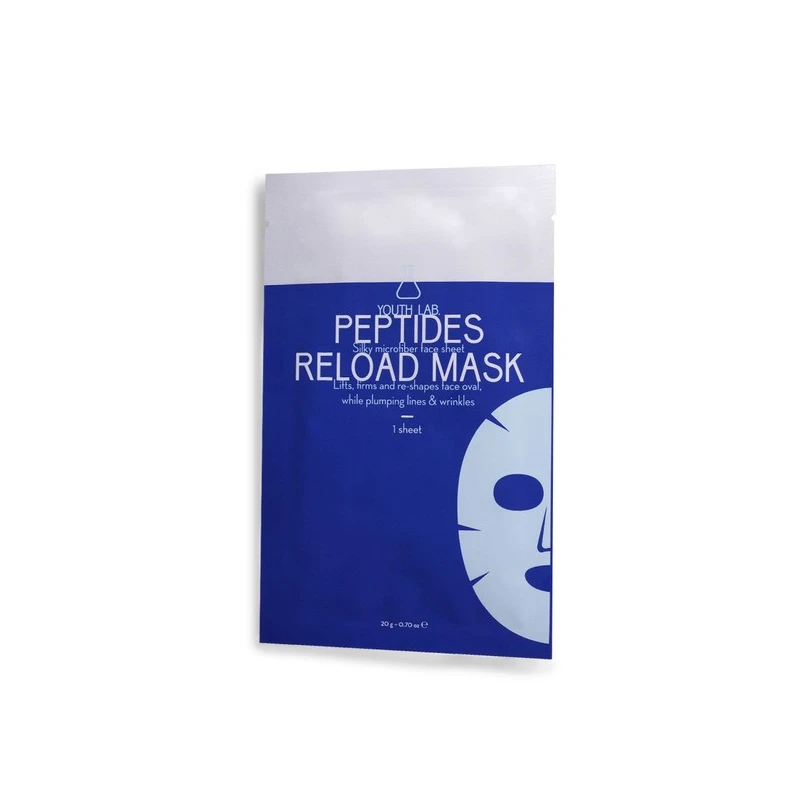 Eμποτισμένη υφασμάτινη μάσκα προσώπου με Πεπτίδια, για πλήρη αναδόμηση της ώριμης επιδερμίδας. Μια εντατική θεραπεία για «γέμισμα» των γραμμών & ρυτίδων, σύσφιξη, και επαναφορά του οβάλ του προσώπου. Αφορά: Η Peptides Reload Mask διατίθεται σε πρακτική συσκευασία μονοδόσης, για να την έχετε παντού μαζί σας αλλά και σε οικονομική συσκευασία 4 τεμαχίων, ως συστηματική εντατική αγωγή ενός μήνα. Δράση & Ενεργά Συστατικά: